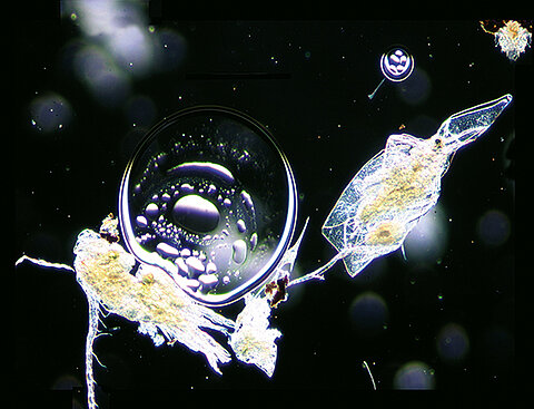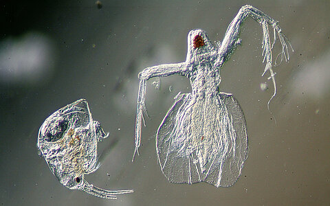 Die Welt der Plankter ist das Freiwasser von Seen und großen Flüssen. Hier lassen sie sich neben Algen, Rädertierchen, Blattfuß- und Ruderfußkrebsen von den Wellen tragen. Es sei denn, sie brauchen Nahrung. Die Tiere dieses Lebensraums (das Zooplankton) können große Mengen Algen und Bakterien vertilgen und sorgen so für eine gute Wasserqualität, z. B. für eine angenehme Optik und ein großes Badevergnügen. Das funktioniert nicht immer reibungslos: entsprechende Analysen und die Auswertung mit dem PhytoLoss-Verfahren können zeigen, ob das Futter (Phytoplankton) schmackhaft und gut verdaulich ist oder ob die Zooplankter allzu massiv von Fischen dezimiert werden.