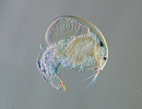 Das Bild „Wunderwelt“ zeigt eine Daphnia aus dem Uferfiltrat – sie ist offensichtlich von der unfreiwilligen Reise durch den Bodenkörper etwas mitgenommen.